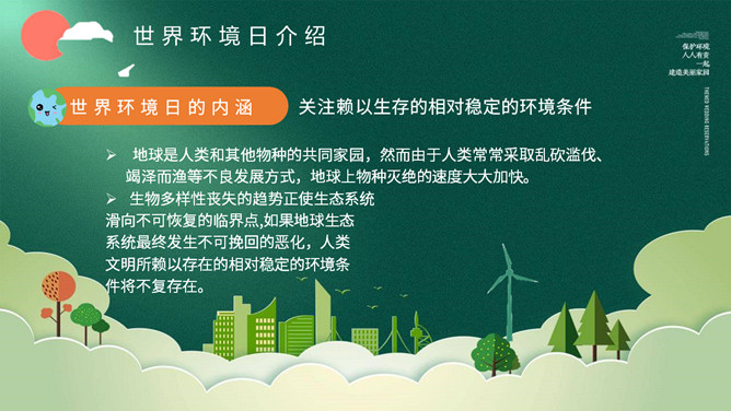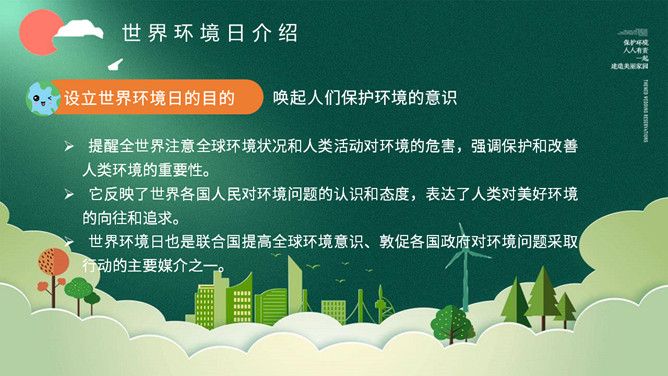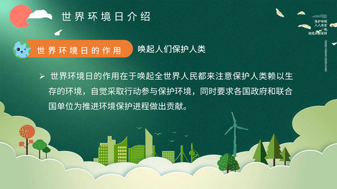 国际环境日的作用在于引发全国际人民都来注意保护人类赖以生存的环境,自觉采纳举动参加保护环境,同时要求各国政府和联合国单位为推动环境保护进程做出贡献。
