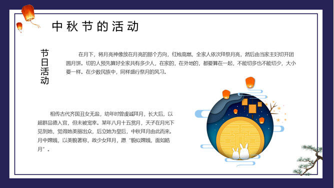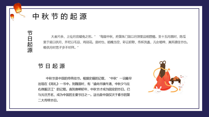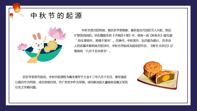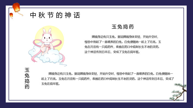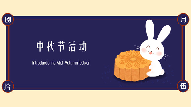 兔子月饼中秋节介绍PPT模板。包括节日来源、前史活动、神话传说、节日含义等内容。