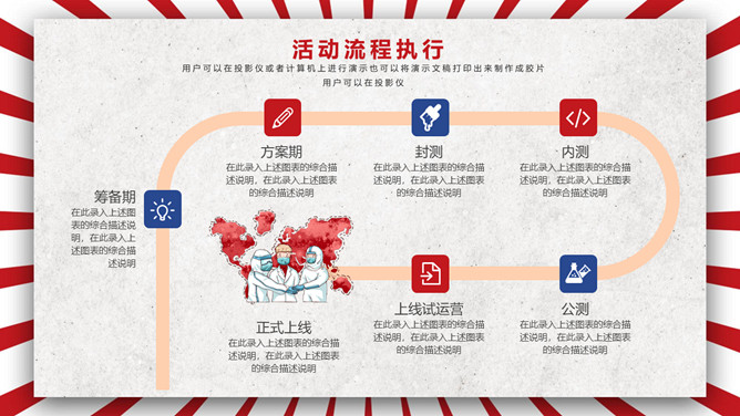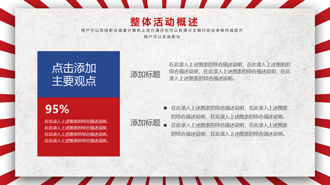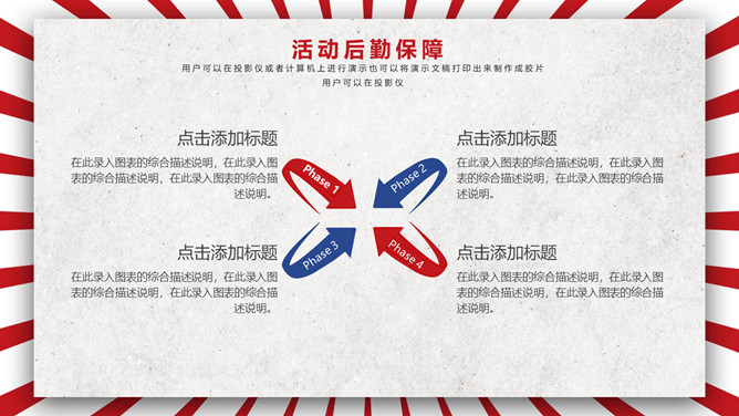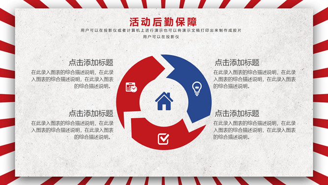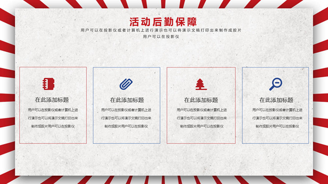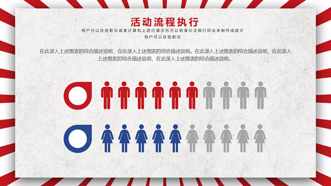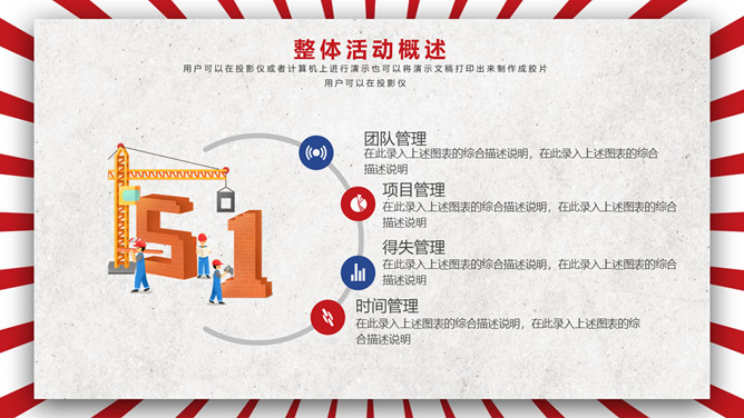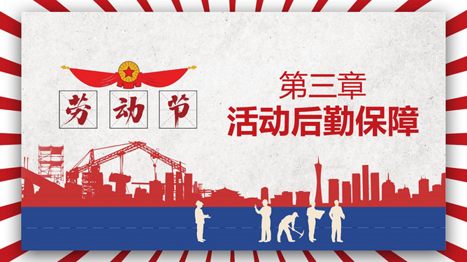 五一劳动节活动策划PPT模板。一套劳动节主题模板,时髦红蓝配色,复古作用,适用于劳动节活动策划等用处。