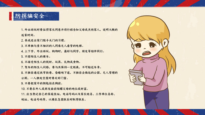 劳动节假日安全教育班会PPT模板。同学们,生命是最为宝贵的,失去了就不或许重来。在安全的问题上,来不得半点麻木和侥幸,必需要建立高度的安全意识,人人讲安全,时时讲安全,事事讲安全,珍爱生命、远离事故、远离伤痛!