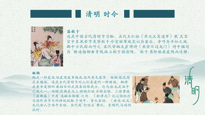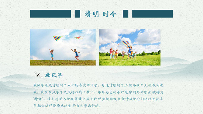 杨柳燕子清明节介绍PPT模板。内容包括清明节的诗歌、清明节的食物、清明节的民俗、清明节的由来。