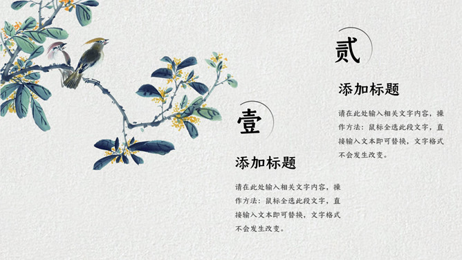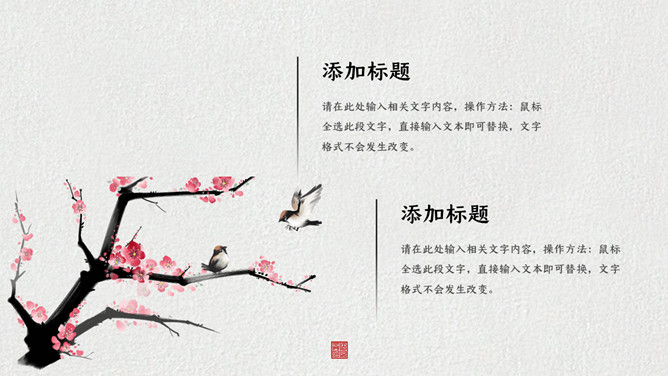 燕子桃花春分节气主题PPT模板。一套春分节气主题模板,春天桃花燕子背景,简约中国风规划。