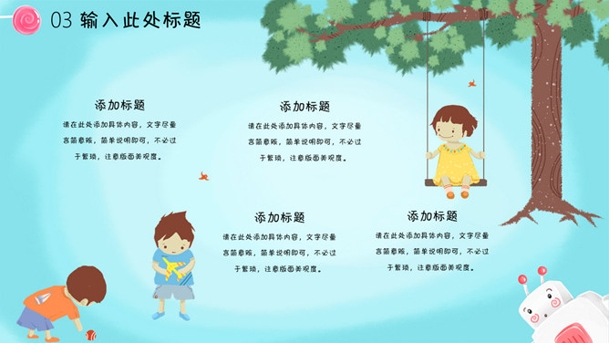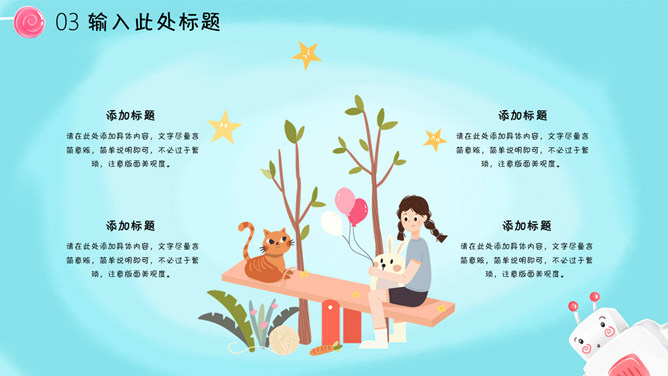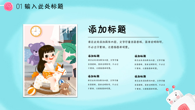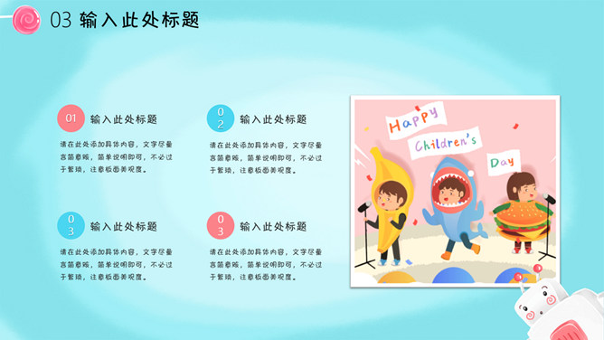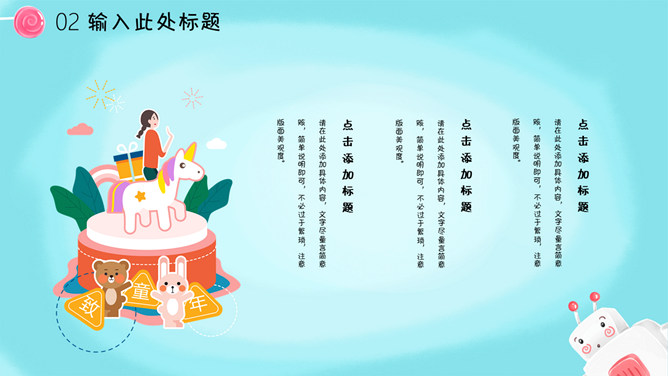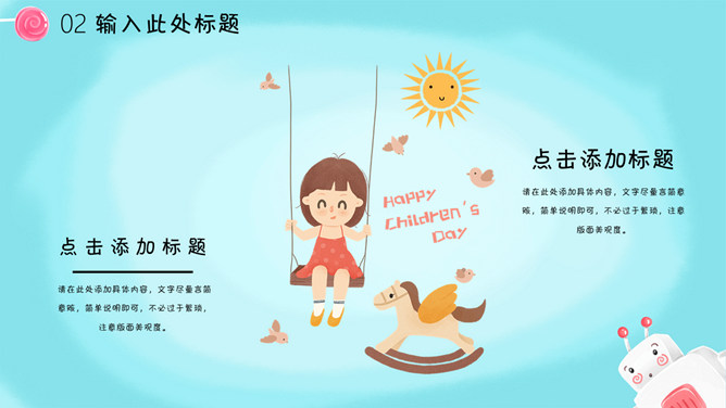 欢喜六一儿童节PPT模板。一套六一儿童节主题模板,可爱卡通规划风格,合适儿童节相关内容。