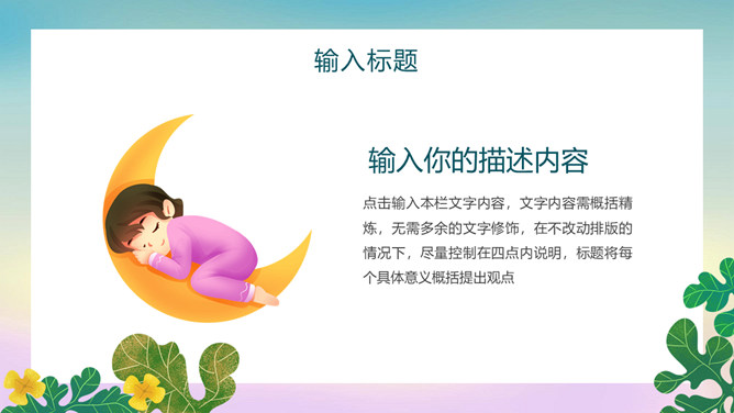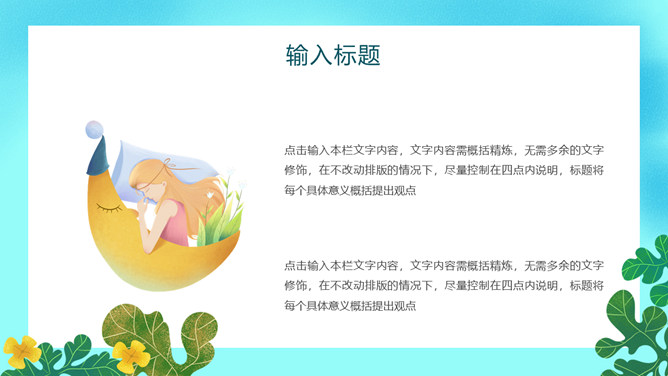 世界睡觉日主题PPT模板。一套世界睡觉日主题模板,卡通插画设计风格,动态播放作用。