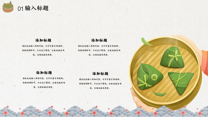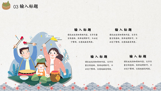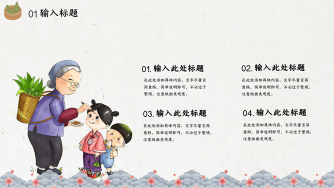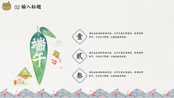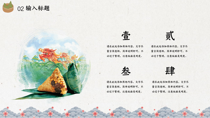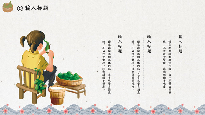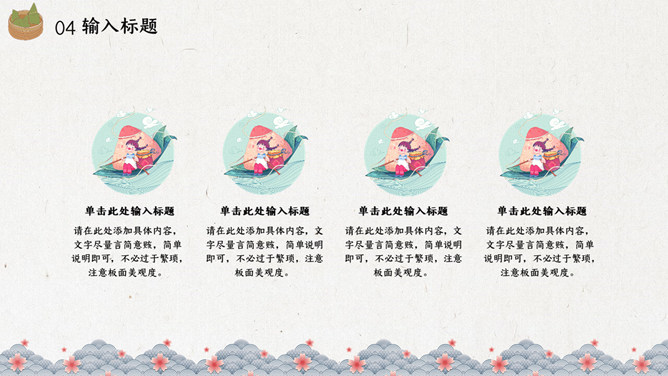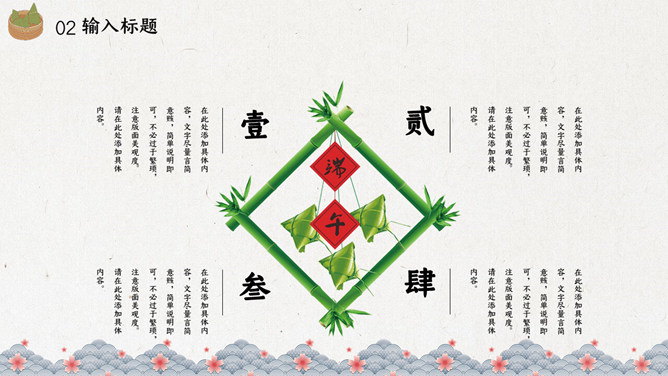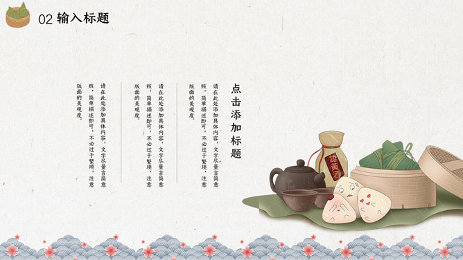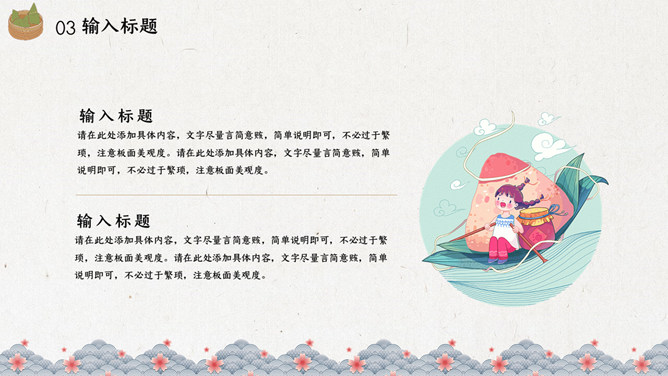 浓情粽意端午节安康PPT模板。一套端午节主题模板,卡通规划风格,适合端午节班会等内容。