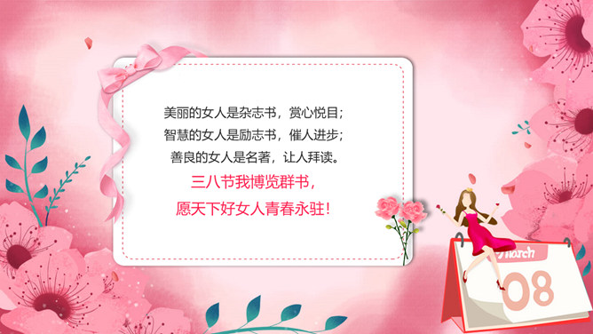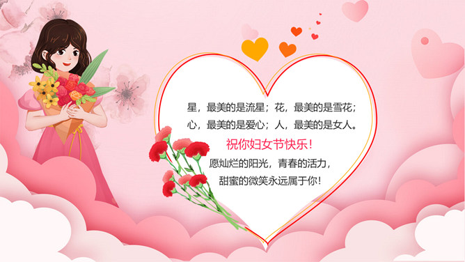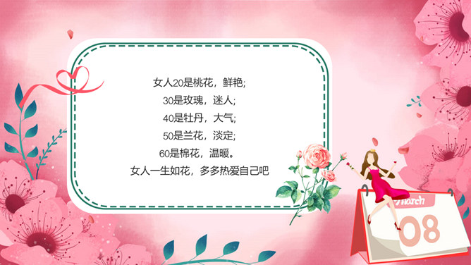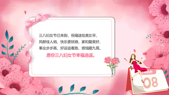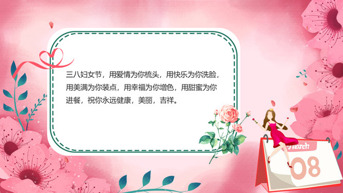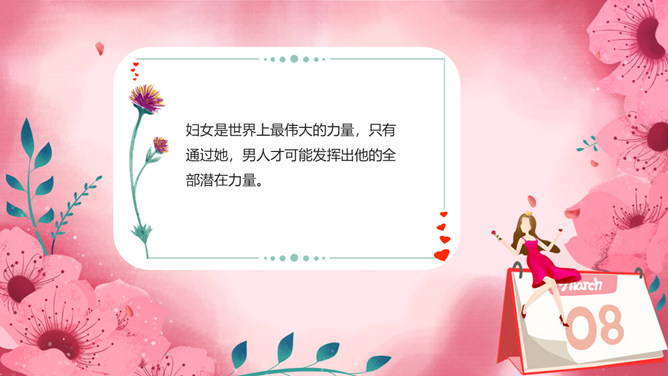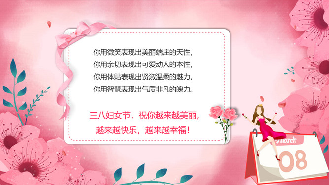 三八妇女节贺卡PPT模板。妇女是世界上最伟大的力气,只有经过她,男人才可能发挥出他的悉数潜在力气。