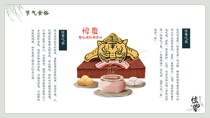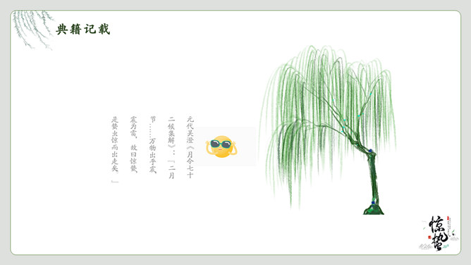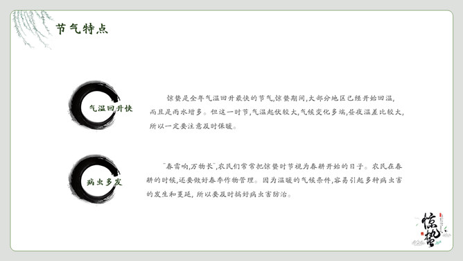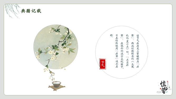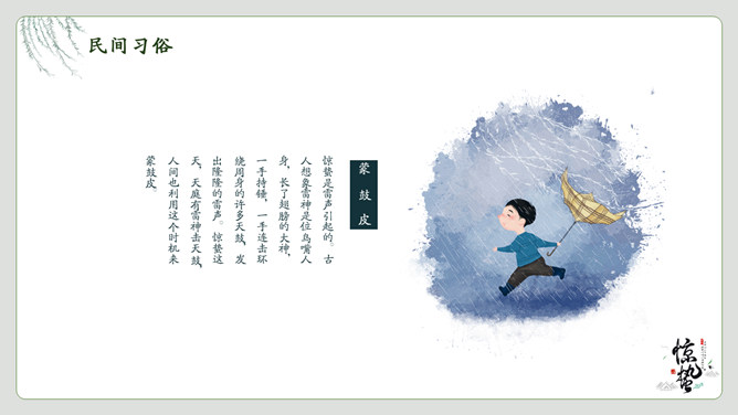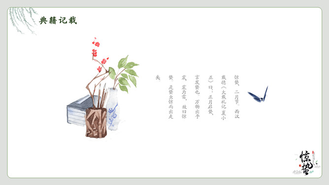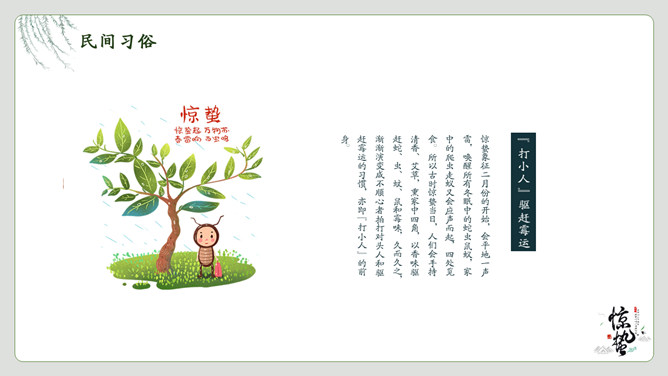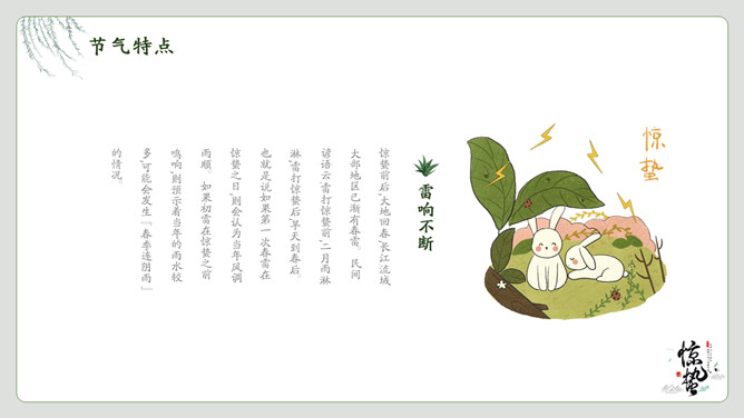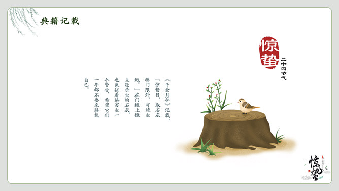 春雷响万物生惊蛰节气PPT模板。一套惊蛰节气介绍模板,绿植背景,简约中国风设计。