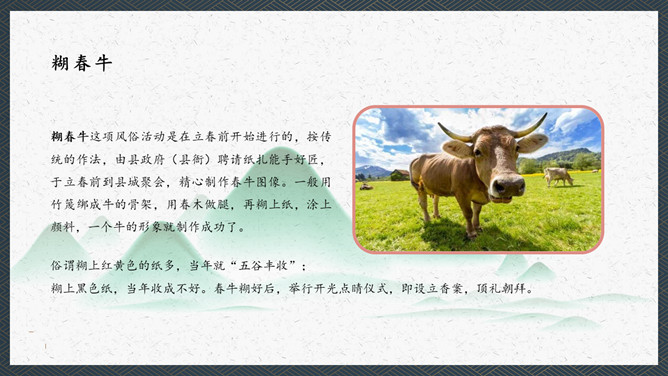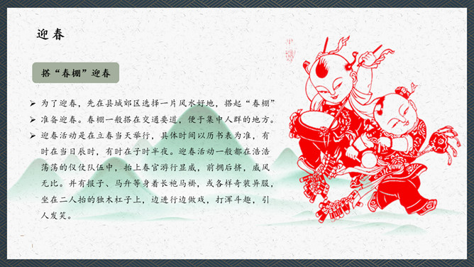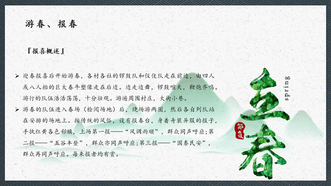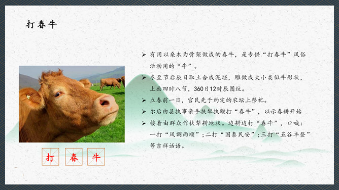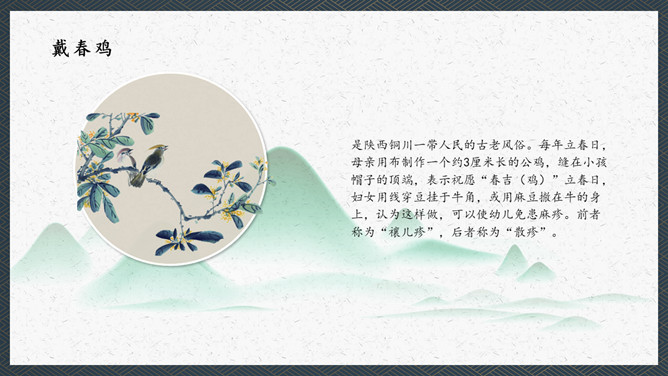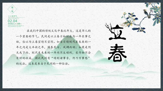 在我们我国的传统文化中春比年大,这是华人的一个重要的节气。民间是以立春日和时辰为一年耕耘之始,俗以为立春宜晴不宜阴。如当日晴则代表未来的一年之内是大丰收之年,国泰民安、风调雨顺;如果是阴天或下雨,则代表未来的一年内不太顺畅,农作物不会有好的收成,因此民间有“晴则诸事吉,阴乃万事愁”的说法。这本是来自于民间的一种俗语。