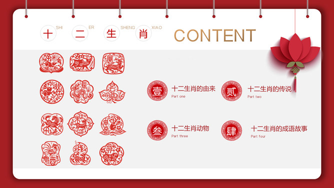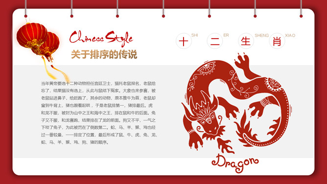 剪纸风十二生肖介绍PPT模板。内容包含十二生肖的由来、十二生肖的传说、十二生肖动物、十二生肖的成语故事。