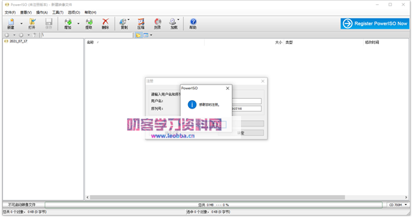 6、至此,我们已经成功的完成了软件的安装与激活。现在我们可以使用poweriso 8中文破解版所有功能。