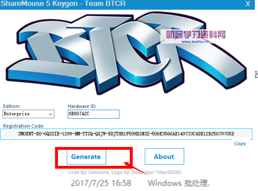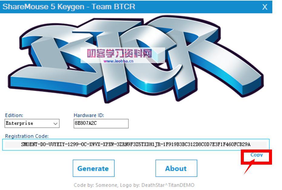 5、生成激活码,点击右下角【copy】,激活码将会自动填入ShareMouse 软件中;