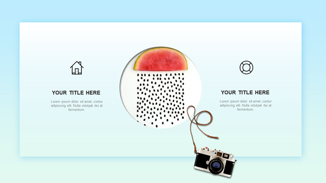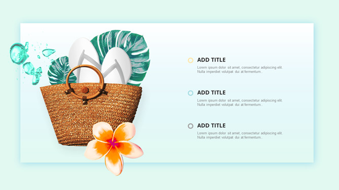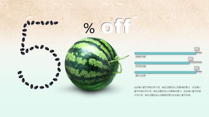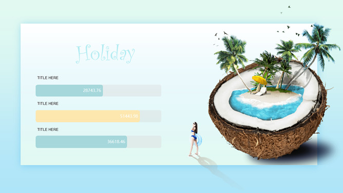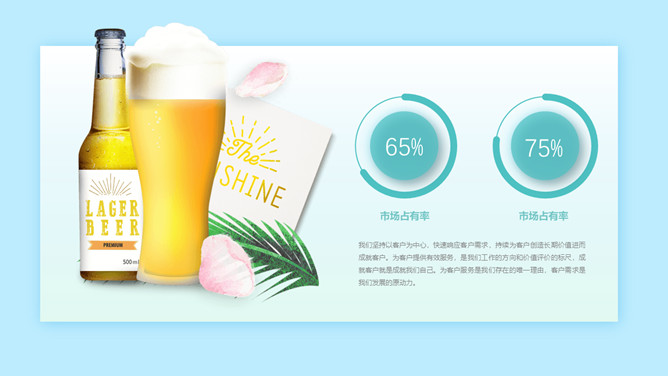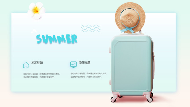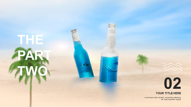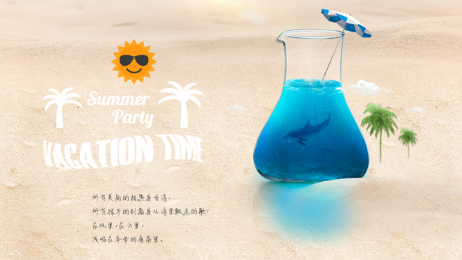 清新夏天海滨沙滩旅行旅行PPT模板。一套夏日主题幻灯片模板,海滨、沙滩、水果、啤酒等清凉元素规划。