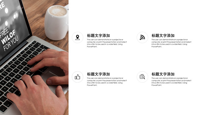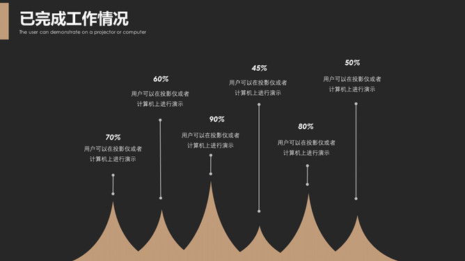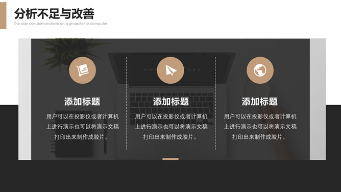 精约时髦项目汇报PPT模板。一套时髦精约项目工作汇报幻灯片模板,大气高端黑金配色,黑色电脑桌面背景。