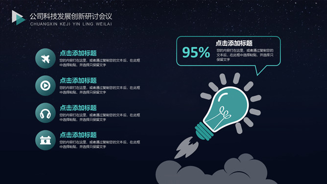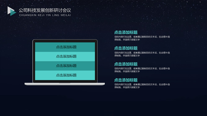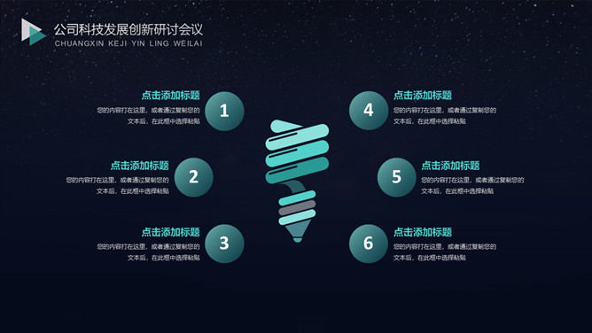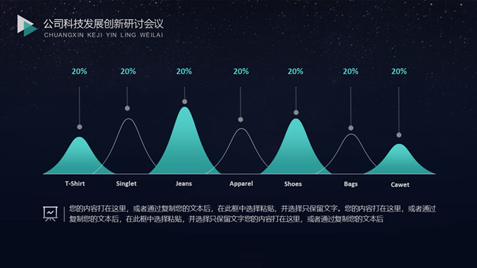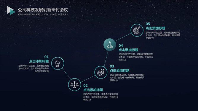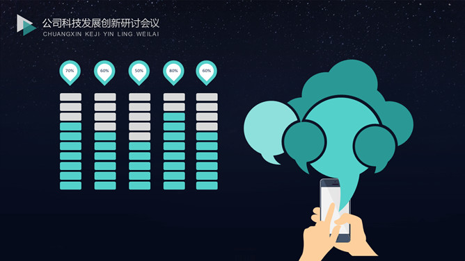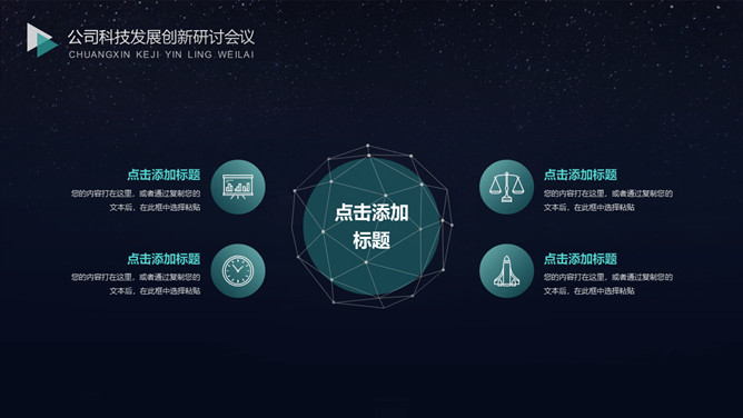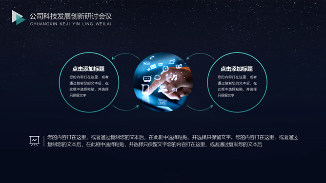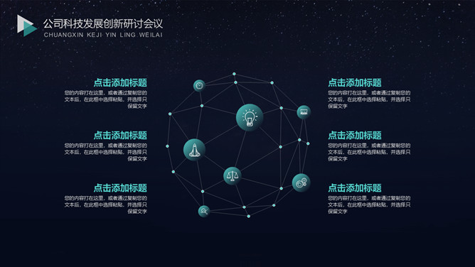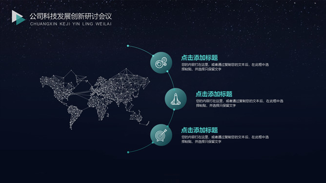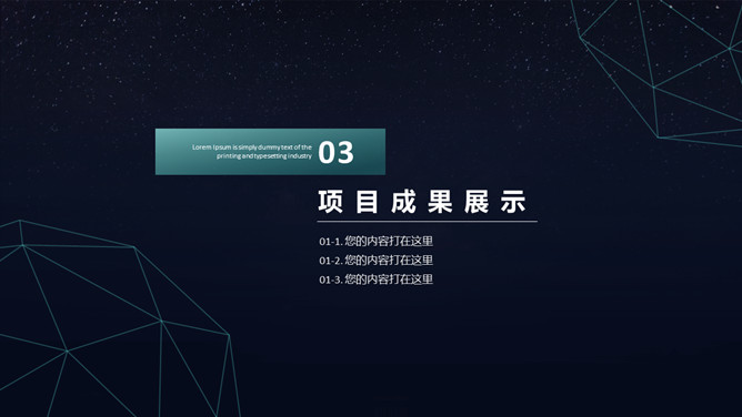 精约深色网络科技风PPT模板。一套科技风幻灯片模板,深蓝背景,极简设计,突变图形元素,适合网络大数据互联网相关主题内容。
