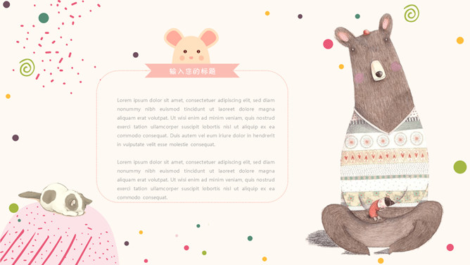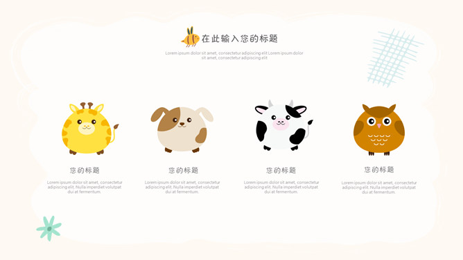 心爱卡通萌化小动物PPT模板。一套心爱卡通风格幻灯片模板,萌萌的各种小动物装饰,简约清新,动态播映效果。