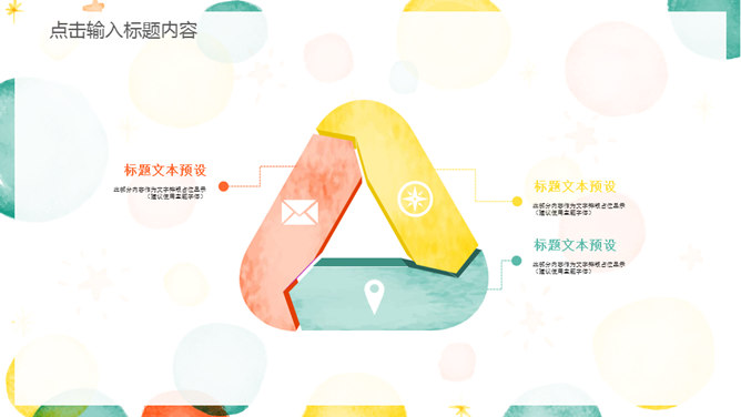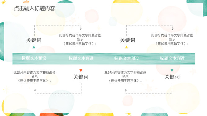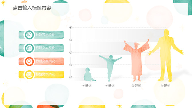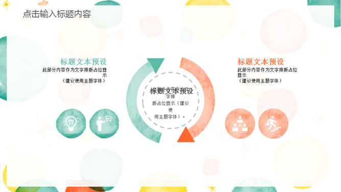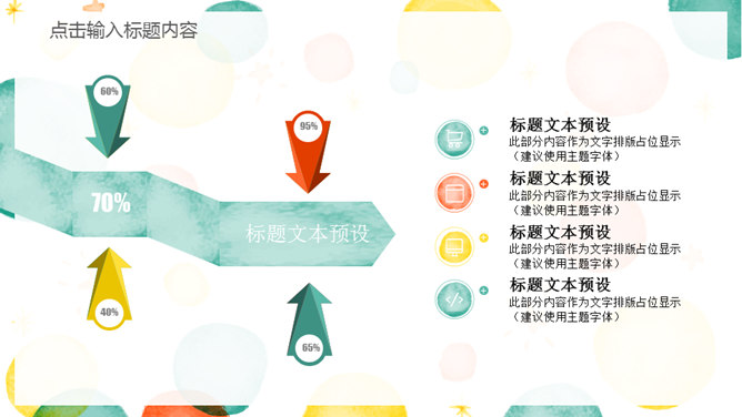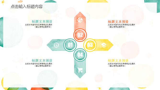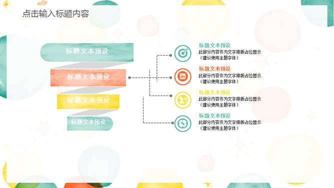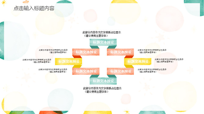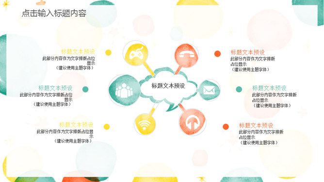 五颜六色水彩泡泡通用PPT模板。一套多用途通用幻灯片模板,五颜六色水彩作用设计,圆形泡泡装饰,动态播放。