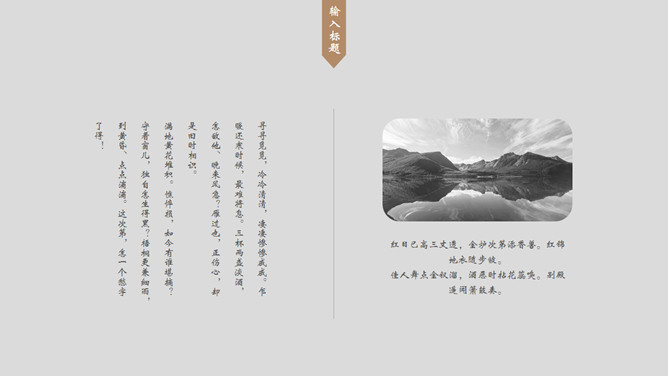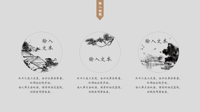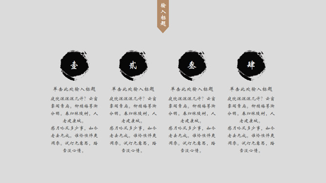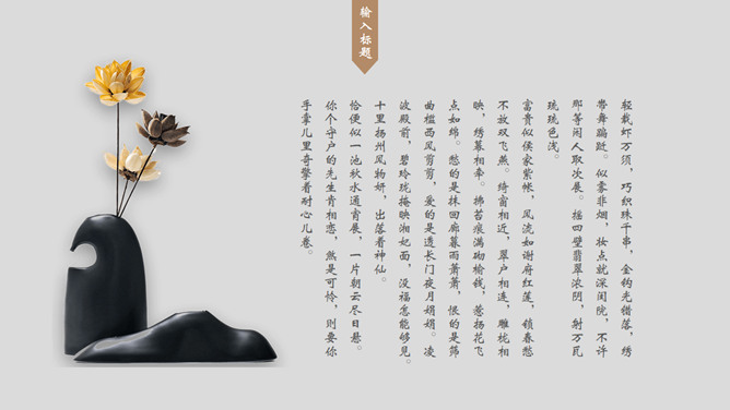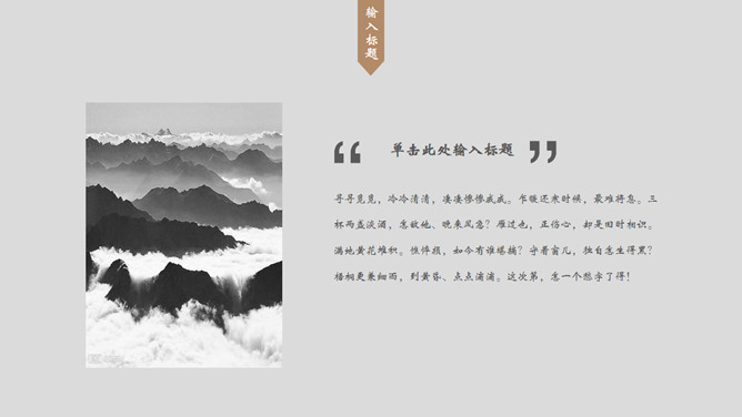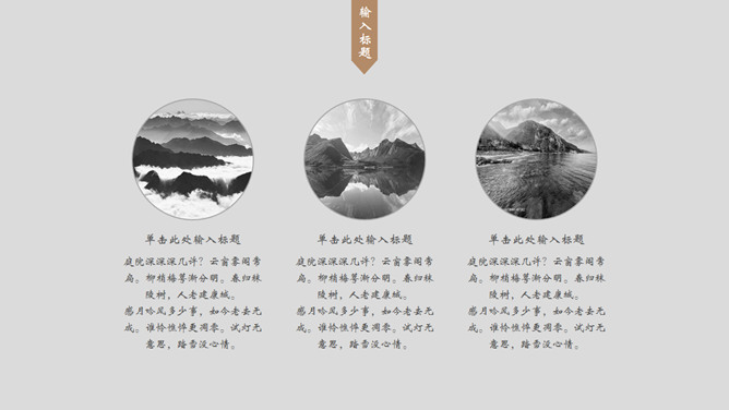 素雅禅意水墨中国风PPT模板。一套精美水墨中国风幻灯片模板,素雅黑灰设计,很有禅意意境。建议装置字体:迷你简书魂、方正魏碑简体。