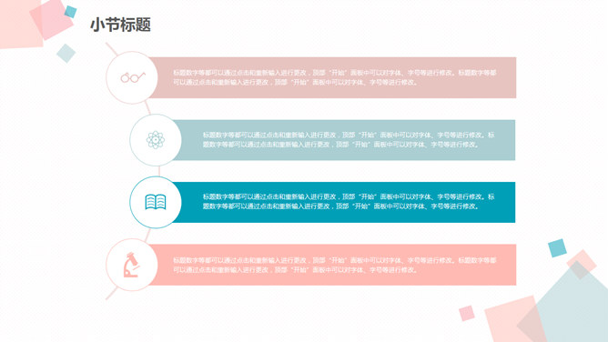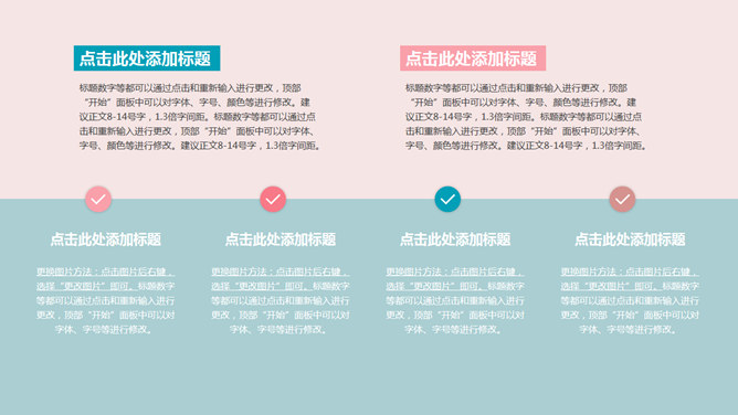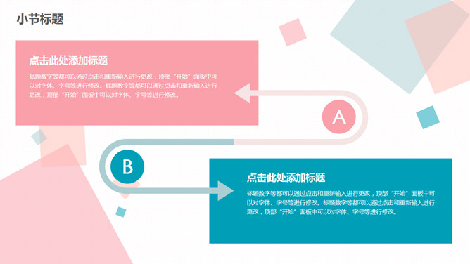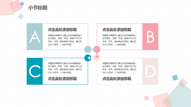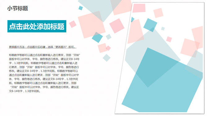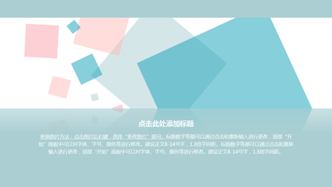 新鲜蓝粉方块通用PPT模板。一套简约多用途通用幻灯片模板,新鲜蓝粉配色,矩形方块装饰。