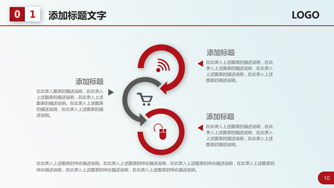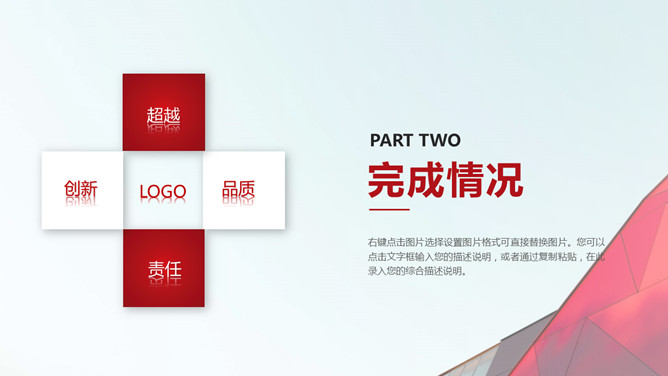 赤色大气工作总结计划PPT模板。一套工作计划总结陈述陈述幻灯片模板,大气红黑配色,微立体视觉效果。