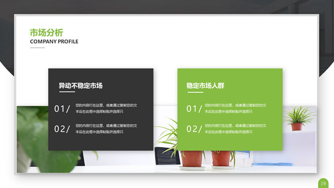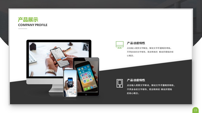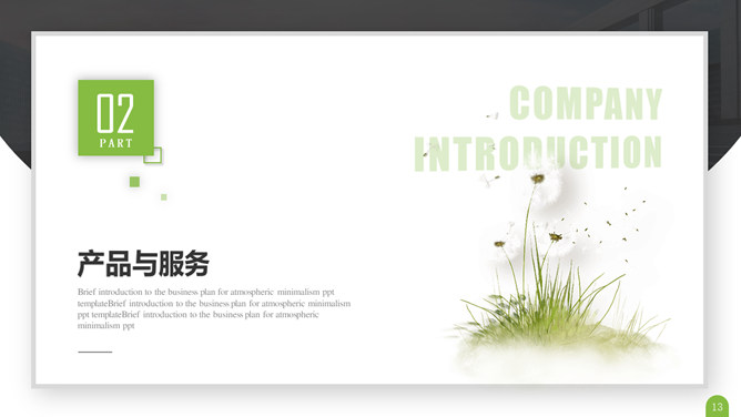 大气精约公司简介介绍PPT模板。一套公司介绍简介幻灯片模板,大气简练设计,共42页,页面类型丰富有用。