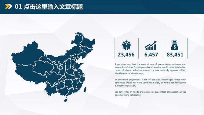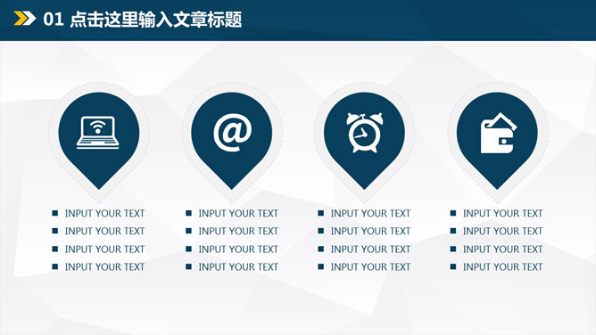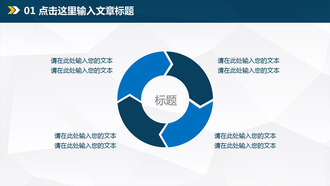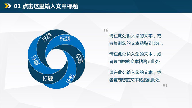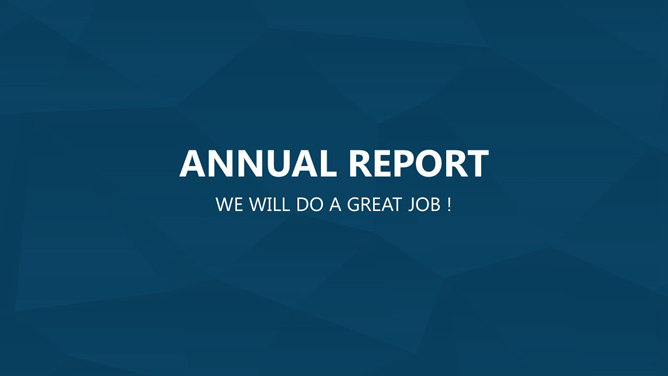 极简大气工作汇报PPT模板。一份简约大方商务工作总结汇报幻灯片模板,low poly低面多边形背景,蓝色主色调。