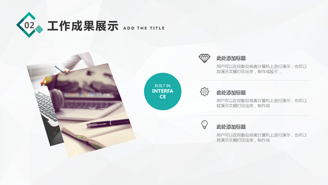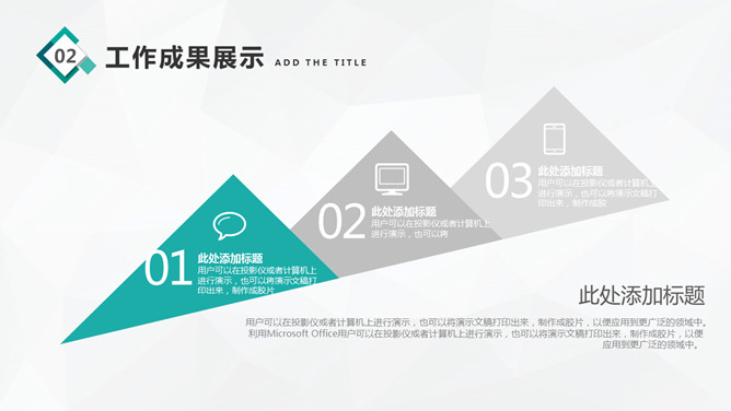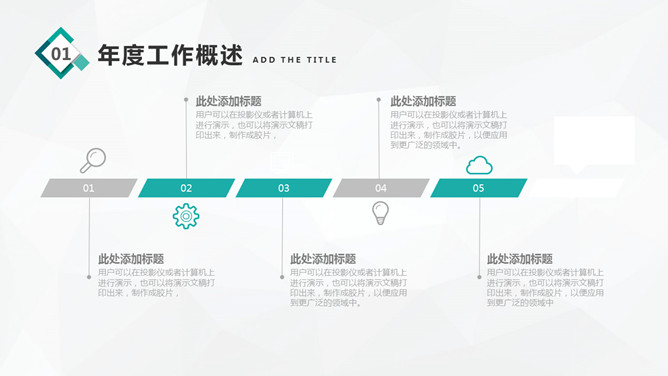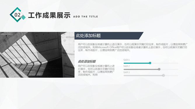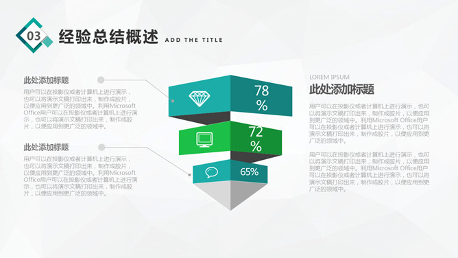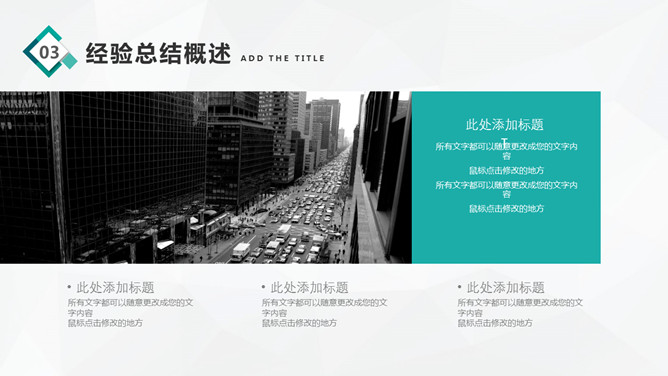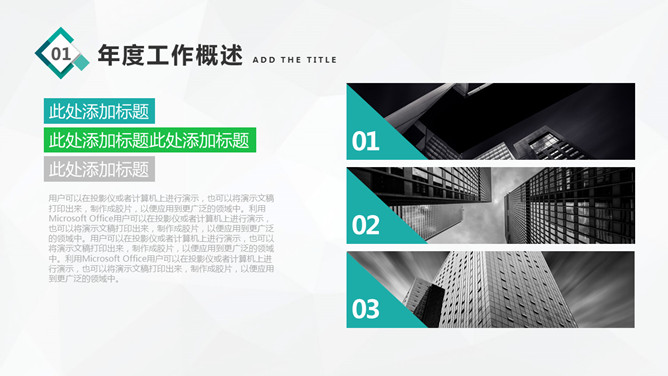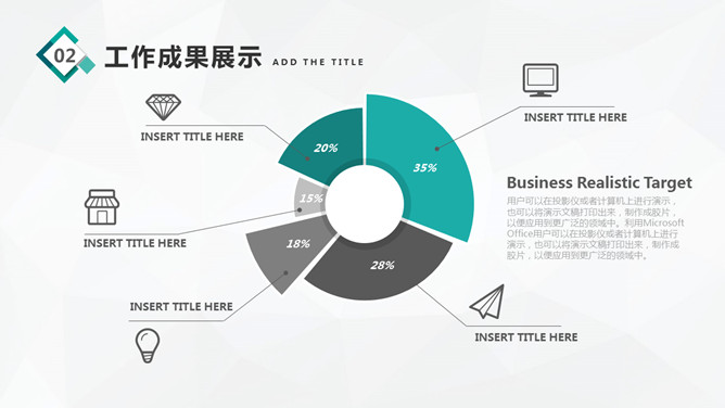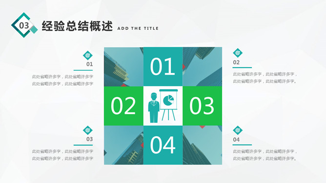 小方块装修通用工作汇报PPT模板。一套通用工作总结汇报幻灯片模板,新鲜蓝绿配色,小方块装修。