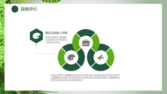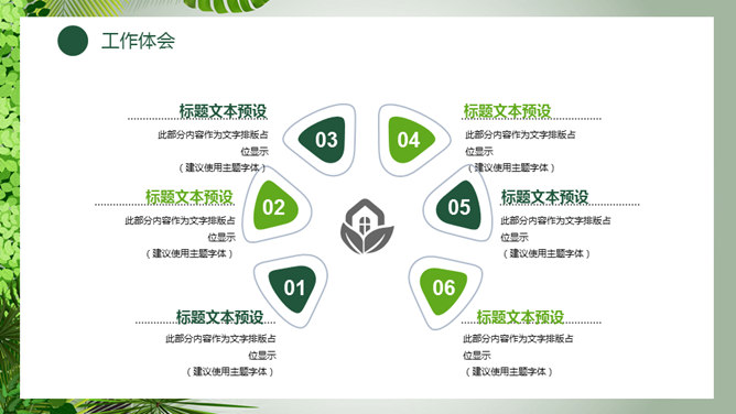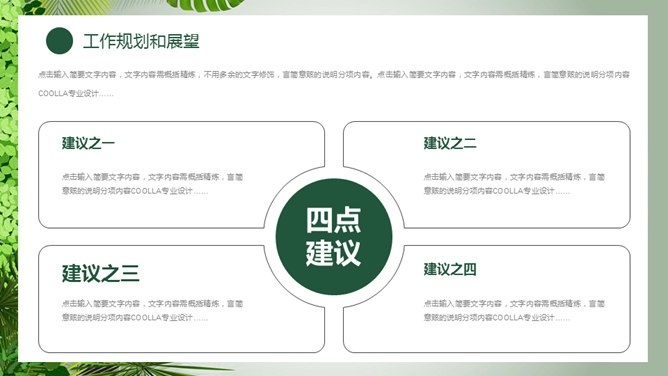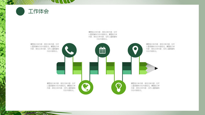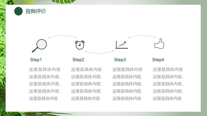 新鲜绿色植物总结报告PPT模板。一套报告总结幻灯片模板,新鲜绿色植物布景,多图形图表页面,动态播映。