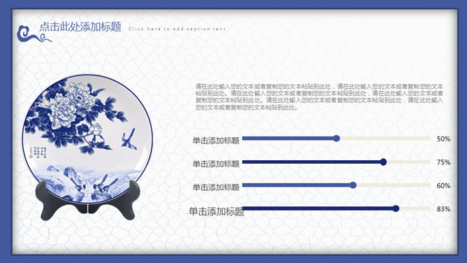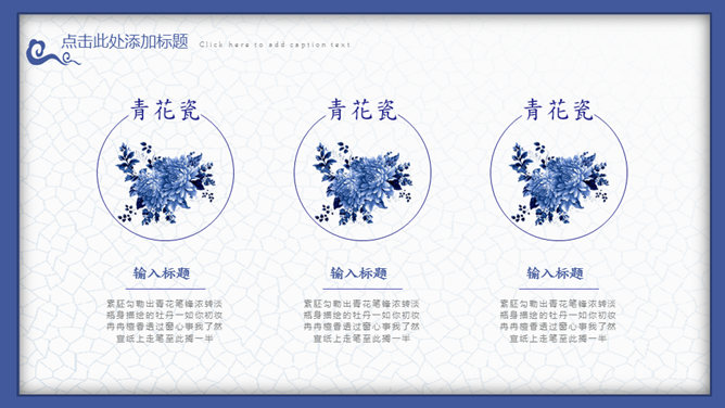 唯美青花瓷中国风PPT模板。一套唯美中国风幻灯片模板,创意青花瓷规划作用,适合中国传统文化相关演示。