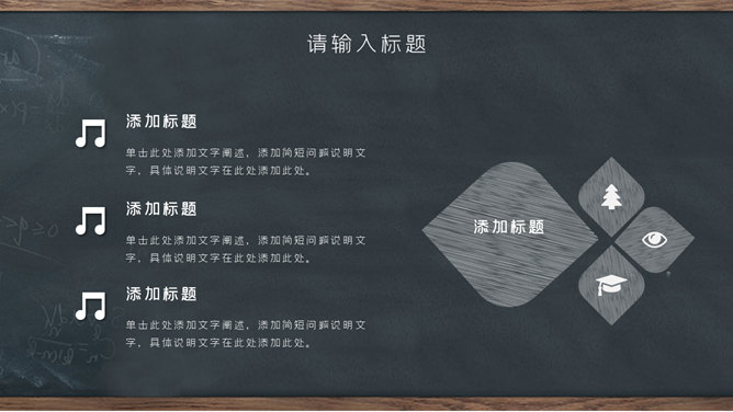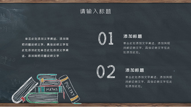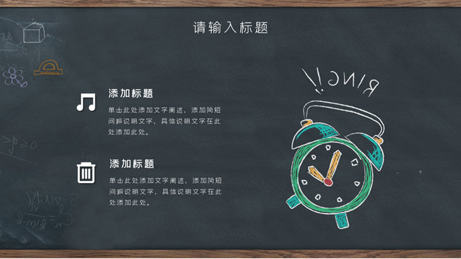 构思黑板教育教育PPT模板。一套精巧构思幻灯片模板,黑板粉笔规划,手绘板书作用,适合用于教育教育相关主题。