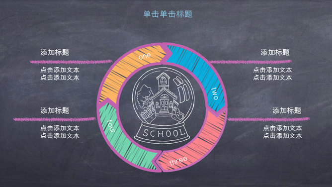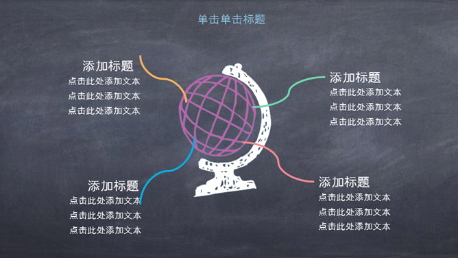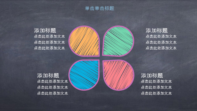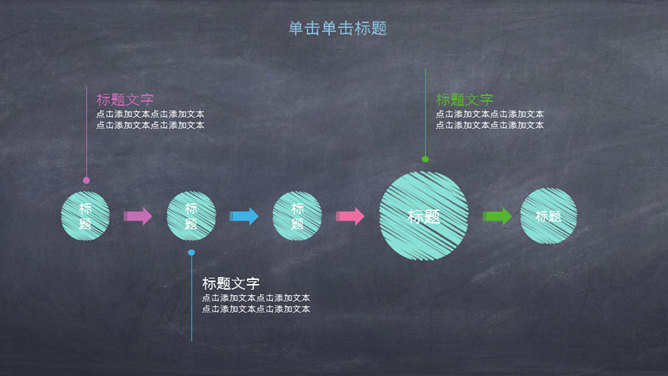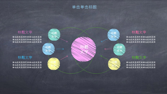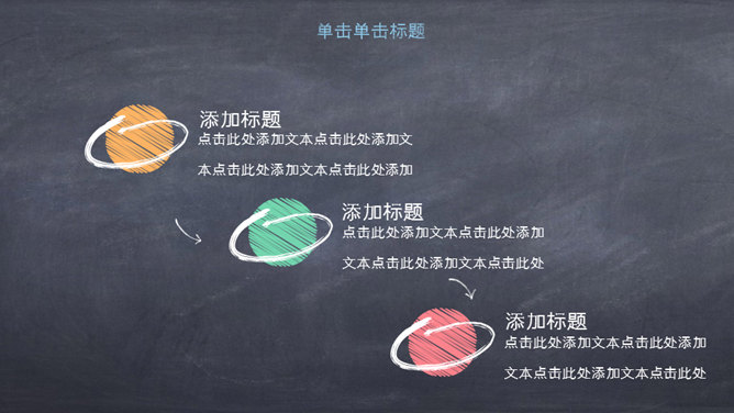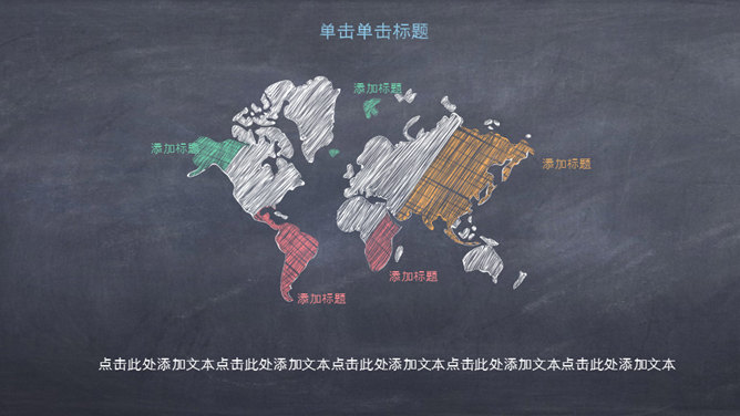 创意黑板五颜六色粉笔PPT模板。一套创意规划幻灯片模板,黑板五颜六色粉笔字效果规划,适合教育教育教师说课等主题。