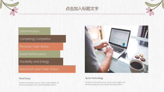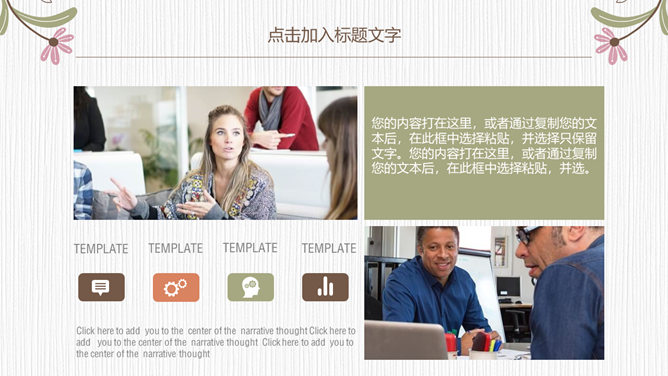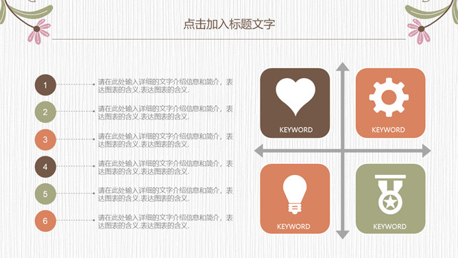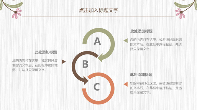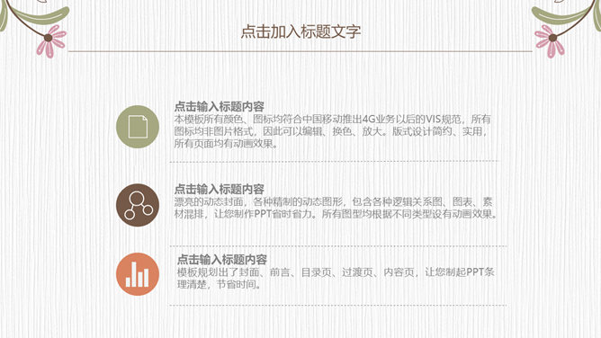 浓艳唯美花朵花边通用PPT模板。一套精巧通用幻灯片模板,唯美花朵花边装修,清新浓艳配色,通用性强。