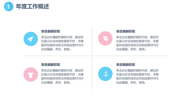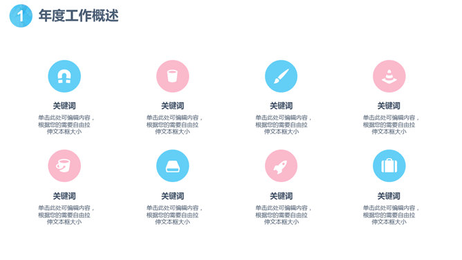 粉蓝年终工作总结报告PPT模板。一套功能强大的年终报告总结幻灯片模板,新鲜粉蓝配色,共32页,页面丰厚实用。
