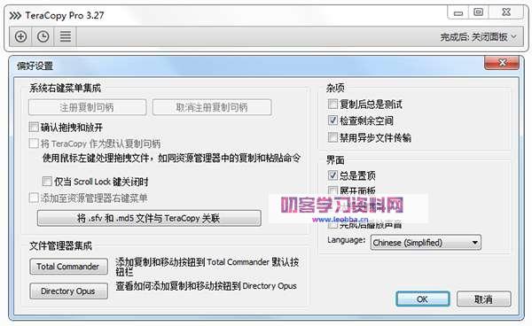 teracopy中文便携版下载附带了一些可调整的参数。例如,您可以将其设置为默认复制处理程序以替换 Windows 复制/移动功能或将其实施到 Total Commander 或 Directory Opus 中,集成到资源管理器上下文菜单中以进行快速文件操作,禁用可用空间检查,设置自动文件验证复制后,使用系统写缓存,或自定义进度条颜色。