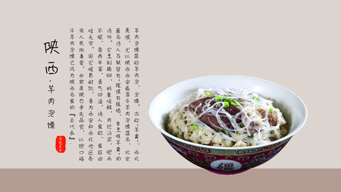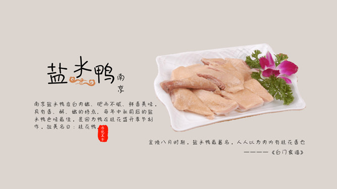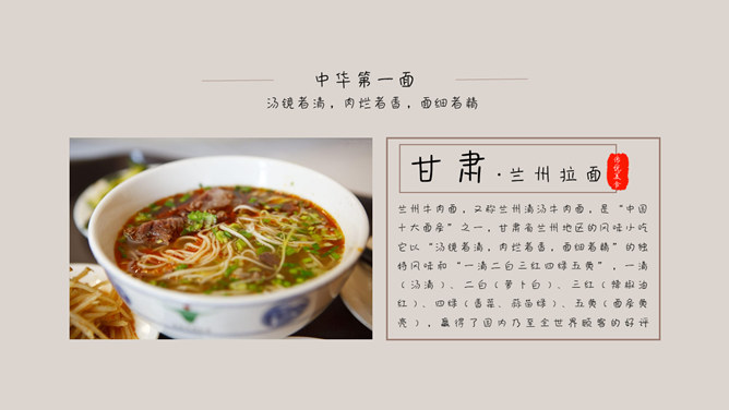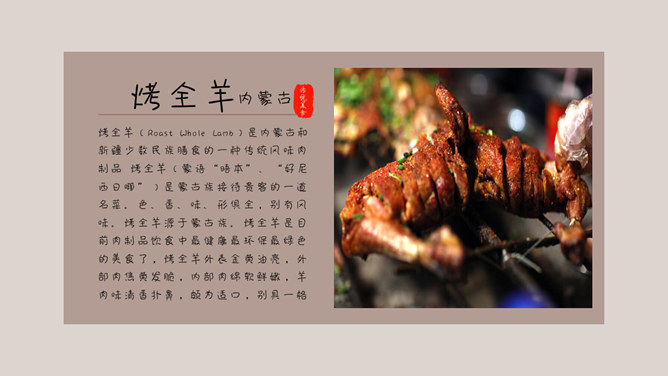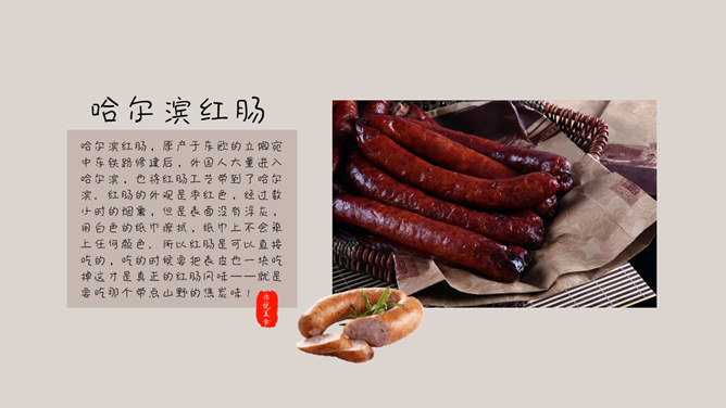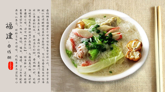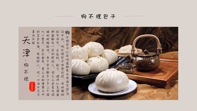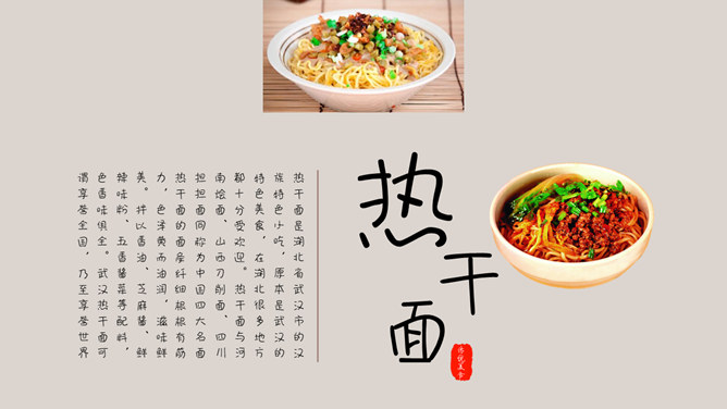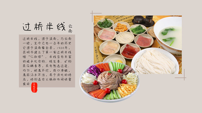 我国各地美食介绍PPT模板。一套介绍我国各地代表性的经典美食的幻灯片模板,精巧精约,很有设计感。