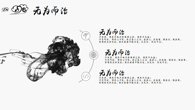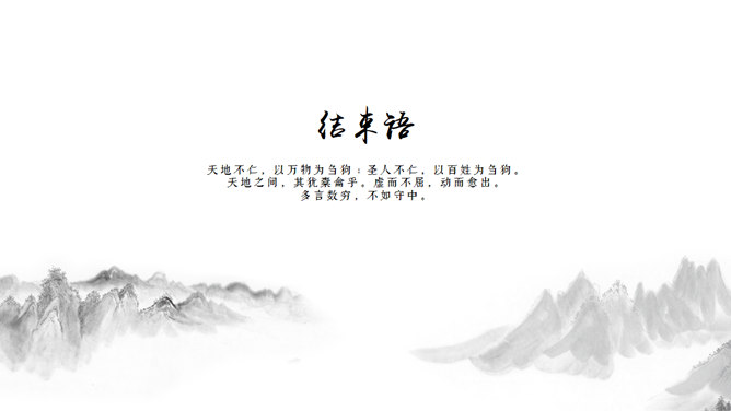 水墨之间精约中国风PPT模板。一套精约中国风幻灯片模板,素雅黑灰色的,很有意境。注意安装毛笔字体:禹卫书法行书简体、方正清刻本悦宋简体,请另行下载安装。