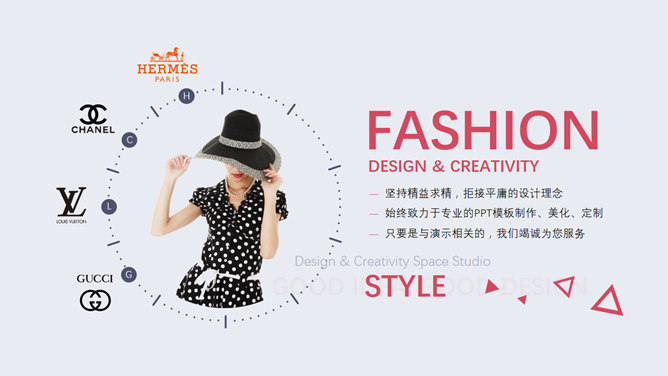 女人时髦潮流PPT模板下载。一套女人时髦潮流主题幻灯片模板,合适奢侈品牌介绍、服装、配饰产品介绍宣扬等。