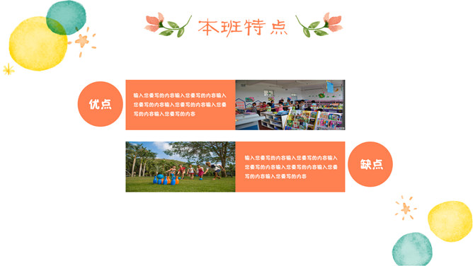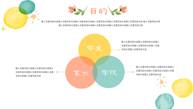 幼儿园小学家长会PPT模板。一套家长会幻灯片模板,彩色泡泡装饰,卡通风格,合适小学幼儿园教师课件运用。