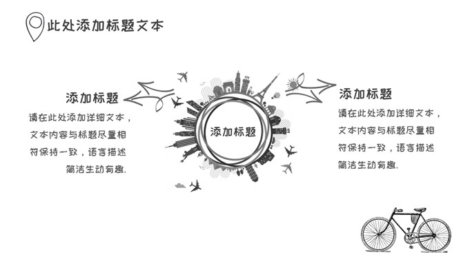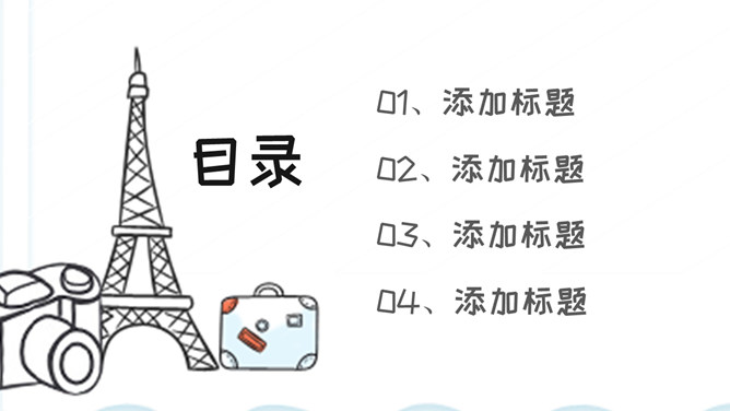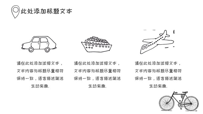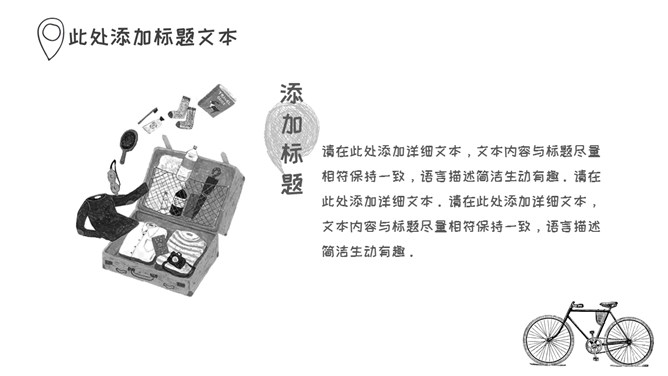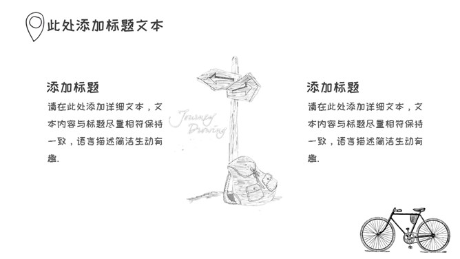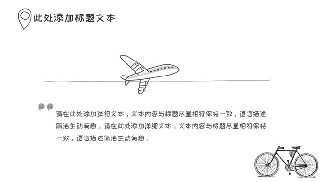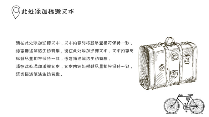 素描手绘游览游览PPT模板。一套游览游览主题幻灯片模板,创意素描手绘风格,使用字体:站酷高兴体2016修订版。