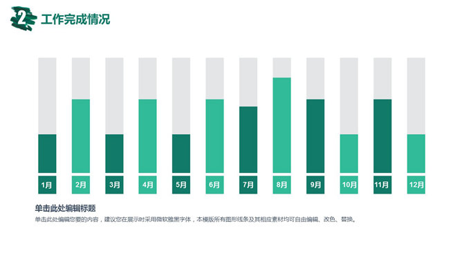 构思墨迹作业总结方案PPT模板。一份简约大气的年度作业总结方案幻灯片模板,以艺术墨迹作用规划,绿色主色调,共31页,页面类型丰厚完全,包括年度作业状况概述、作业完结状况、作业存在的缺乏、下一年作业方案几部分。