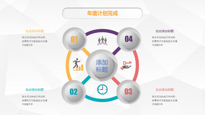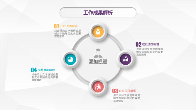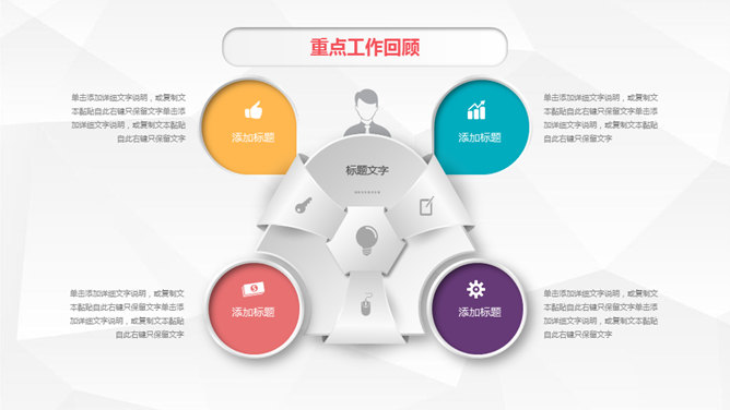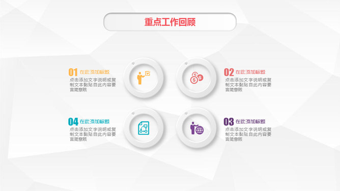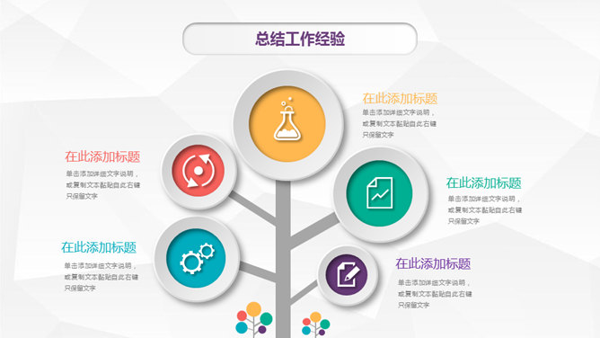 新鲜微立体工作总结PPT模板。一套简练工作汇报总结幻灯片模板,精美微立体规划作用,新鲜配色,动态切换。
