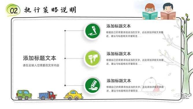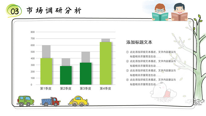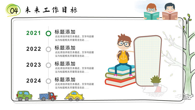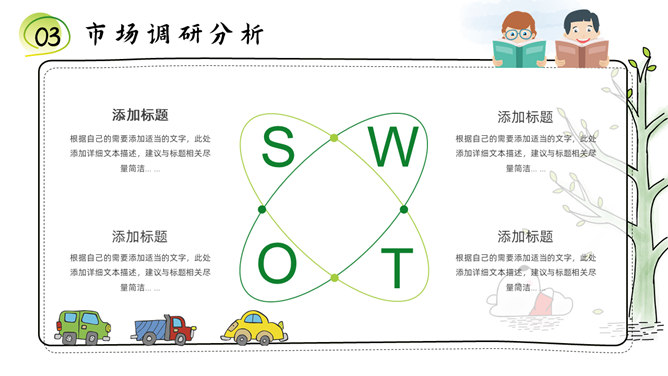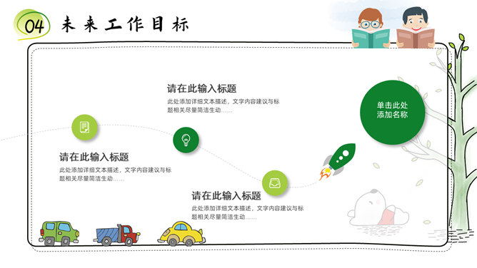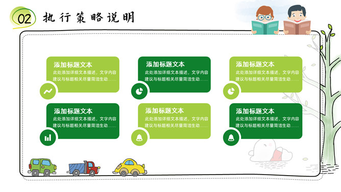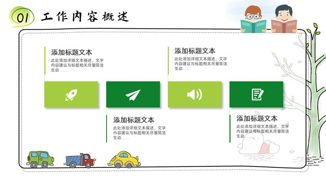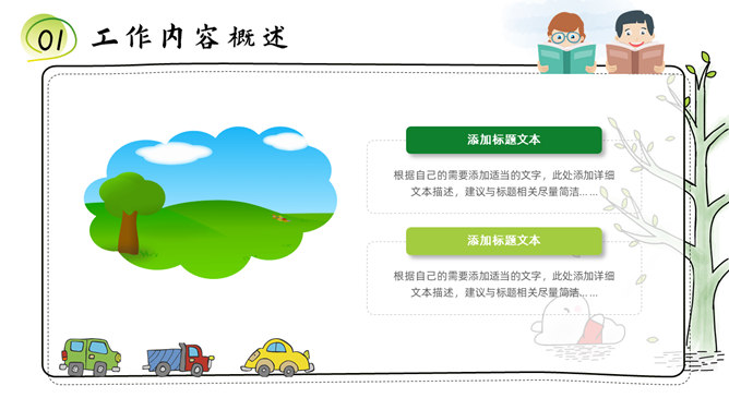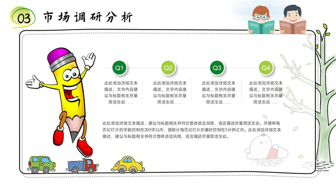 可爱卡通说课教育课件PPT模板。一套教育教育说课课件幻灯片模板,可爱卡通规划风格,新鲜绿色主色调。