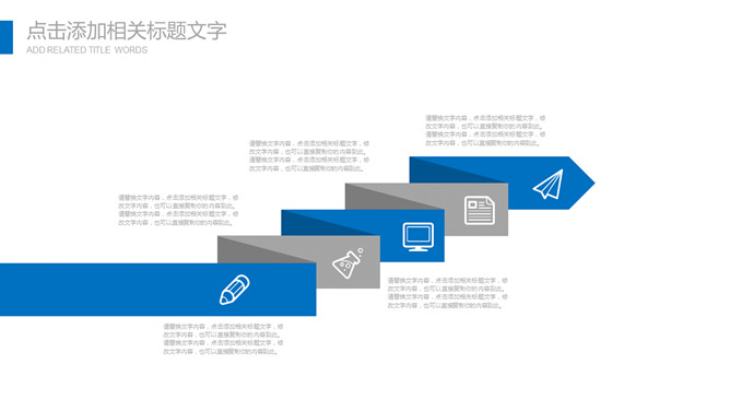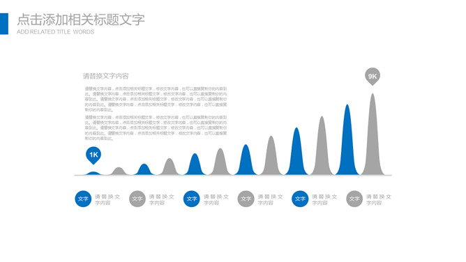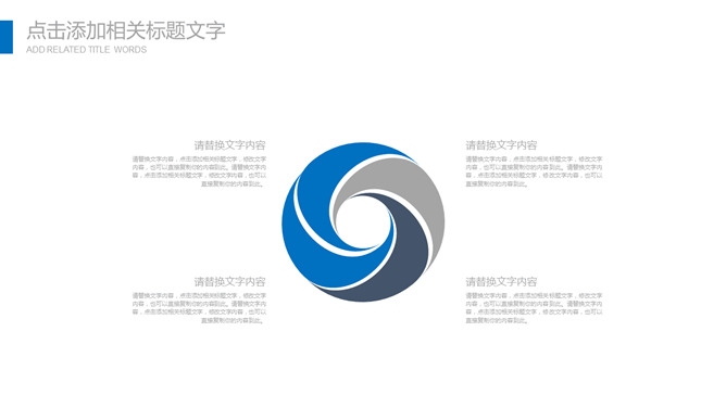 极简大方工作总结报告PPT模板。一套工作总结汇报报告幻灯片模板,蓝灰配色,大气极简设计风格,图形图表丰富。