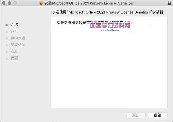 3.在Office for Mac 2021激活工具的界面中,点击“继续”。