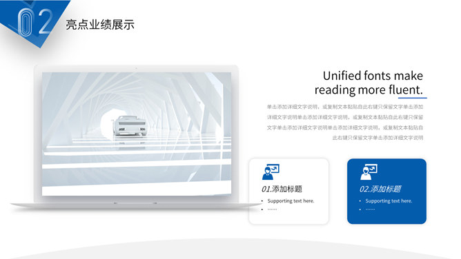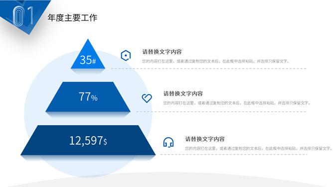 大气部分年终工作总结PPT模板。一套个人或部分年终工作总结汇报幻灯片模板,清爽蓝色主色调,大气雪山山峰布景。