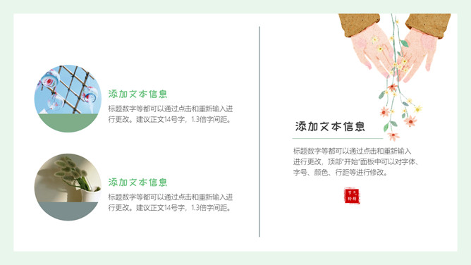 唯美文艺薄荷绿少女风PPT模板。一套少女风幻灯片模板,文艺插画风格设计,小清新薄荷绿配色,浓艳唯美。