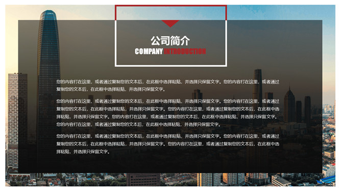 大气有用公司企业介绍PPT模板。一套企业公司介绍简介幻灯片模板,经典大气黑红主色调,页面类型丰厚有用。