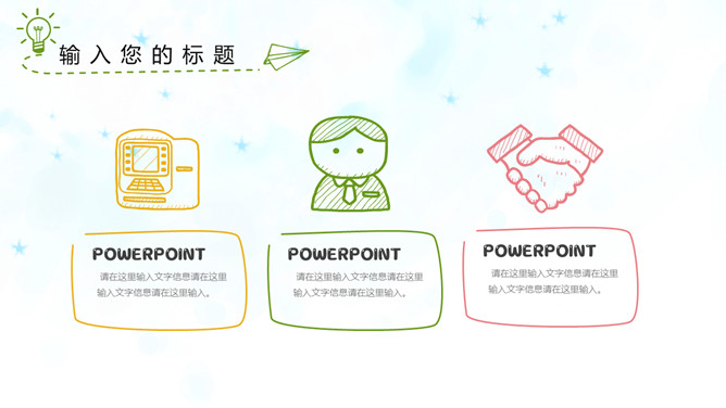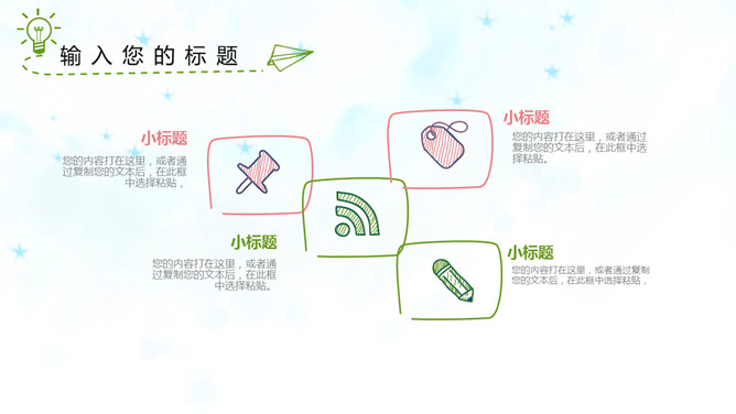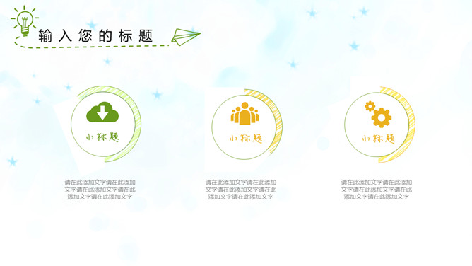 五颜六色水彩卡通小树PPT模板。一套卡通风格幻灯片模板,五颜六色水彩规划,卡通手绘风格,五颜六色小树封面。