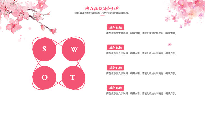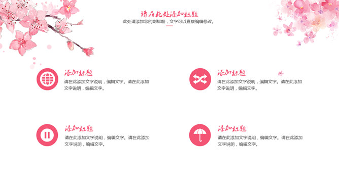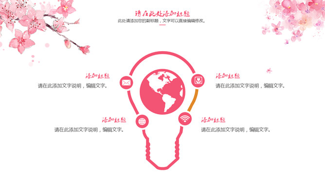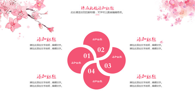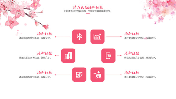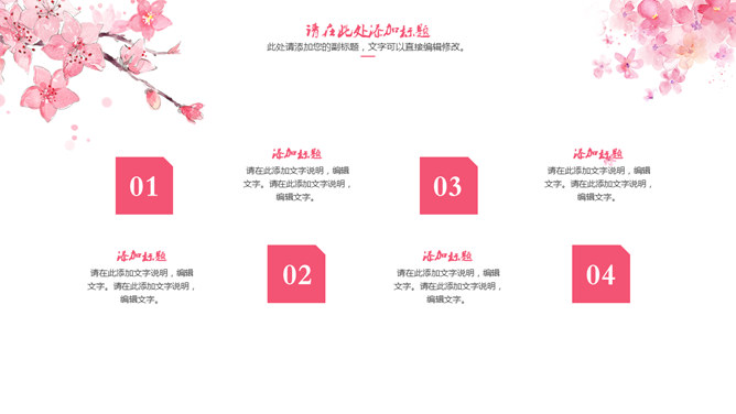 三生三世十里桃花PPT模板。一套粉色系幻灯片模板,浪漫桃花装饰,多图形图表。留意装置字体:叶根友毛笔行书。