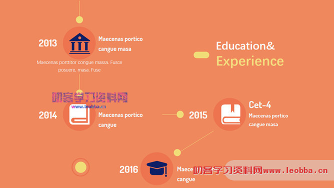 橙色扁平化MBE风格PPT模板。一套采用流行的扁平化MBE风格规划的幻灯片模板,暖色系配色,心爱新鲜时髦,可用于工作报告演示等用于。使用字体:方正正纤黑简体、Dosis。