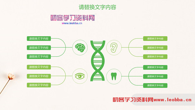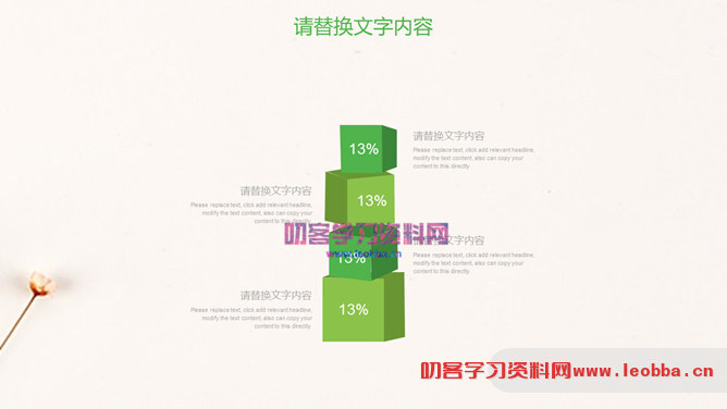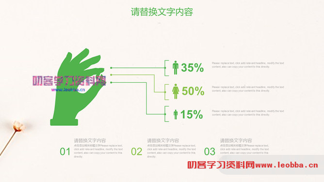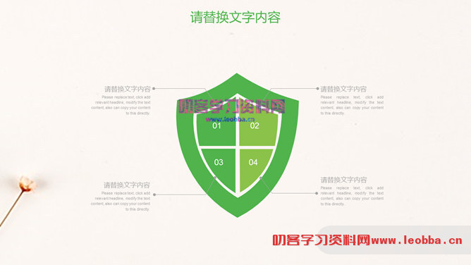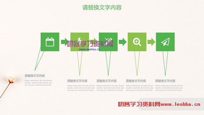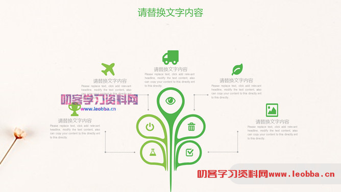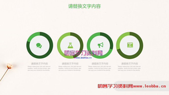 新鲜浓艳简约唯美PPT模板。一套简约浓艳通用幻灯片模板,新鲜绿色主色调,唯美小花花束背景。